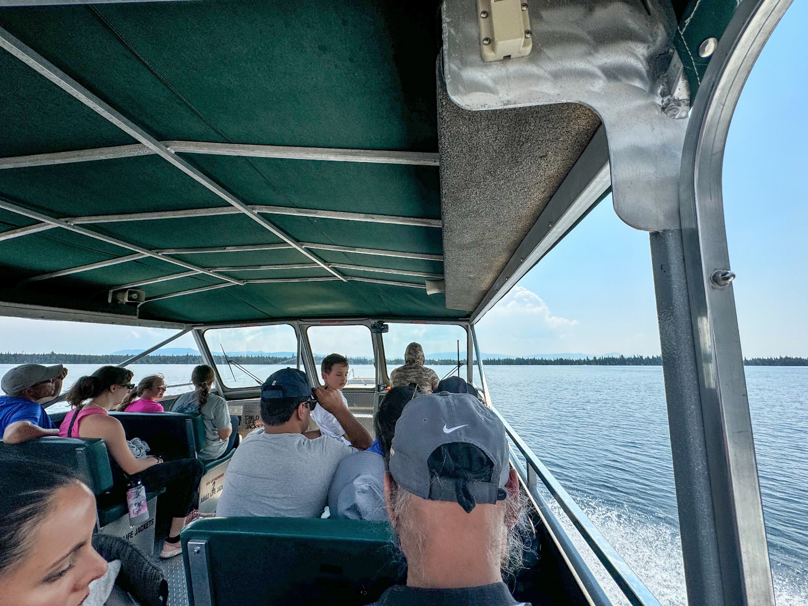 Tout simplement car en faire le tour est assez long et si comme Marjo et moi ce jour-là, vous envisagez de randonner sur les hauteurs, traverser Jenny Lake en bateau vous fera gagner un temps précieux ! Cela permettra également de vous reposer et de profiter du paysage le temps de cette mini croisière. De quoi conclure en beauté une magnifique randonnée. Le fait de traverser en bateau, vous évite un retour de plus de 3 km pour regagner le parking. La navette part du sud est du lac pour aller au nord ouest de ce dernier.