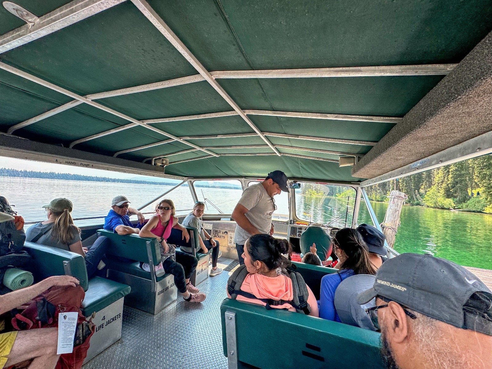 Je vais vous expliquer cette situation car c'est ce que nous avons fait. Le matin, nous sommes partis à pied pour faire une partie du tour du lac. Nous avons ensuite enchainé avec le trail menant à Hidden Falls puis Inspiration Point. Le but de la journée était d'atteindre le bout de Cascade Canyon. Autant vous dire que le retour en bateau nous a fait le plus grand bien. À la fin de notre randonnée, nous nous sommes donc rendus au quai Ouest. Nous sommes donc montés dans le bateau sans ticket. Une fois arrivé au quai Est, c'est à ce moment-là, une fois la traversée terminée qu'il faudra vous acquitter du coût de la traversée. Donc pas de panique, si vous vous trouvez dans l'incapacité de prendre un billet côté Ouest, c'est normal. 😉