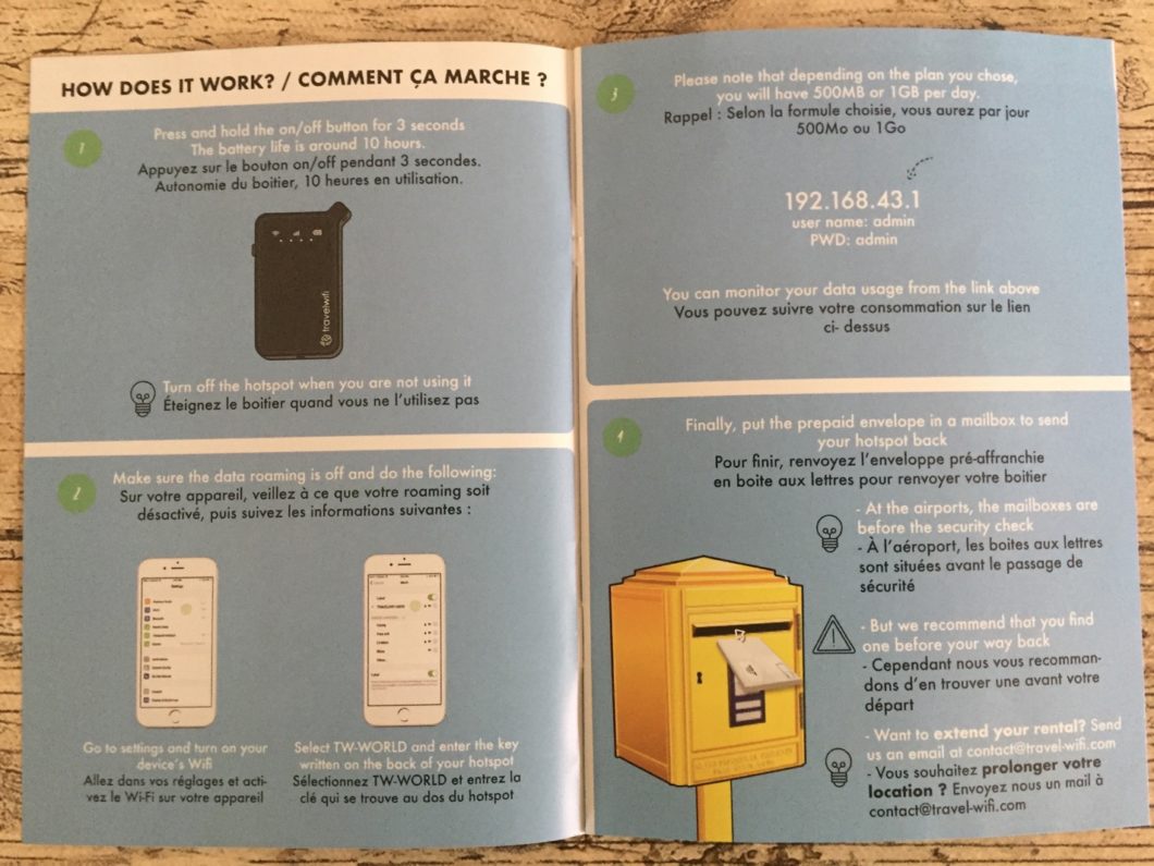 Il faut savoir que l'on achète pas ce boîtier, on le loue et ce pour la durée de notre séjour. C'est pratique, pas de résiliation, un forfait qui démarre le jour J et qui se termine à votre retour.