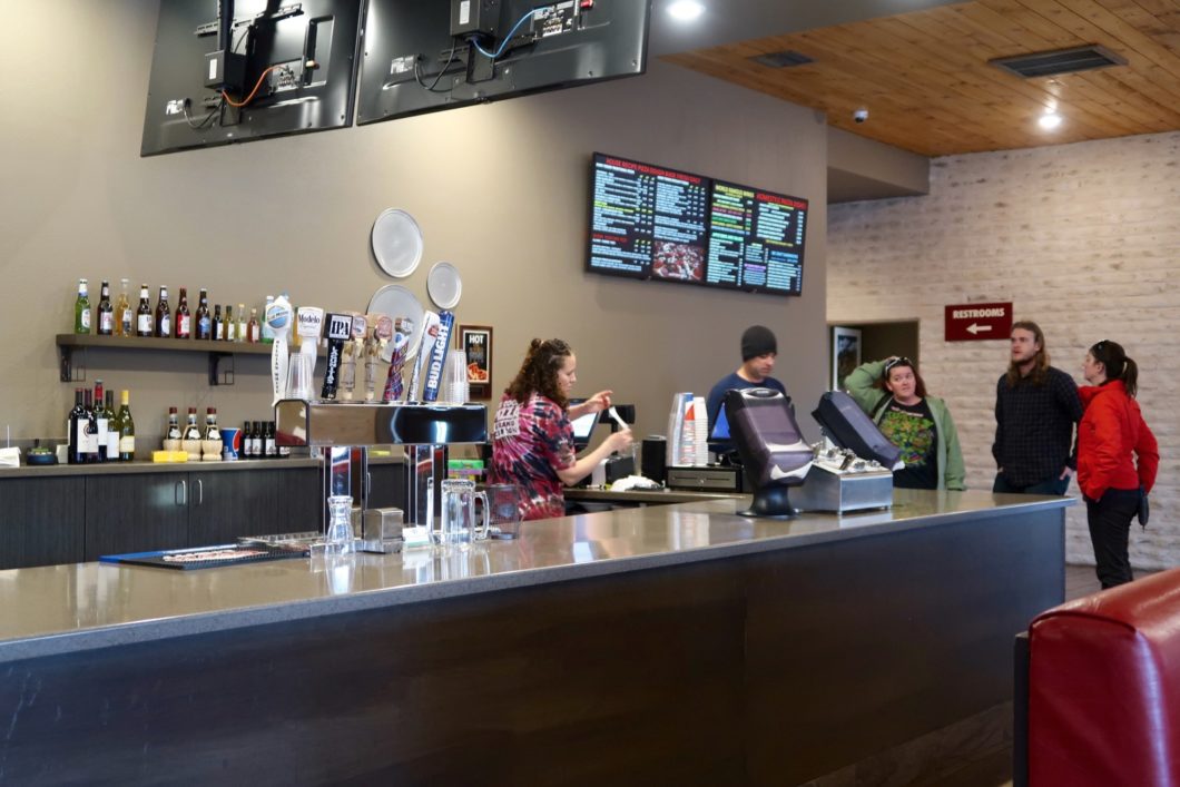 Pour 2 pizzas, 2 plats de pâtes et des boissons (bière et fontaine à soda), nous en avons eu pour $68.