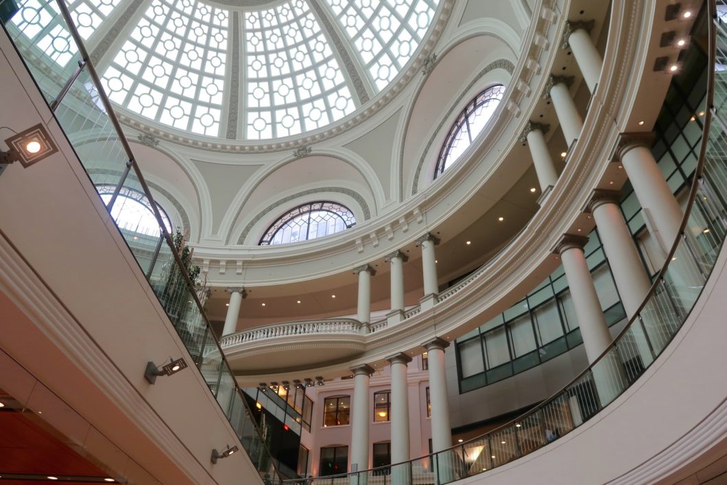 L'ensemble des différentes enseignes se trouve dans ce complexe haut de 8 étages à l'architecture intérieure plutôt réussie avec un atrium et un immense dôme.