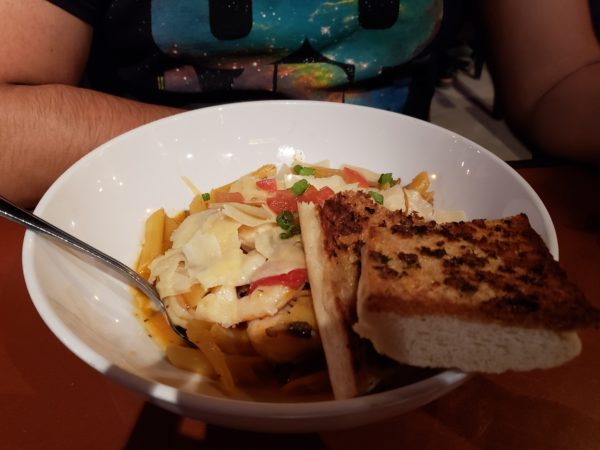 Mon mari s’est laissé tenté par un plat de Spicy Shrimp Salsa (désolée pour la photo un peu sombre). Cela peut être un peu relevé pour certains.
