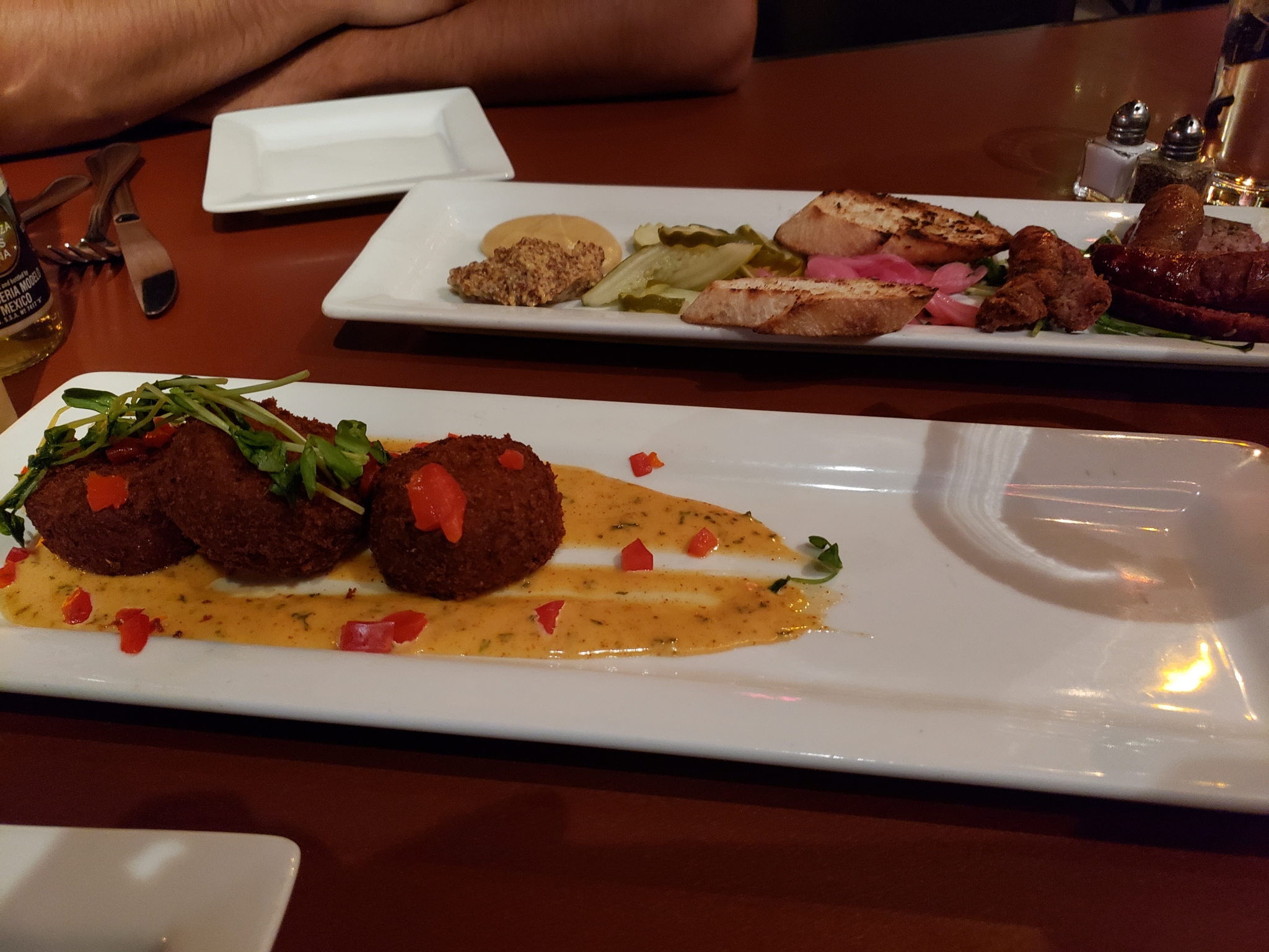 Nous avions choisi des petits plats à partager comme le Sausage Trio ainsi que les Crab and Salmon Cakes :