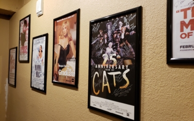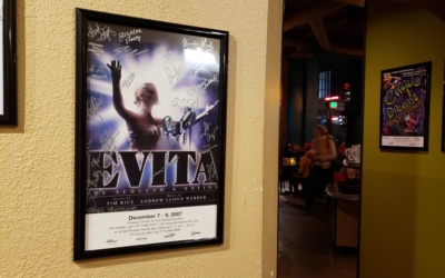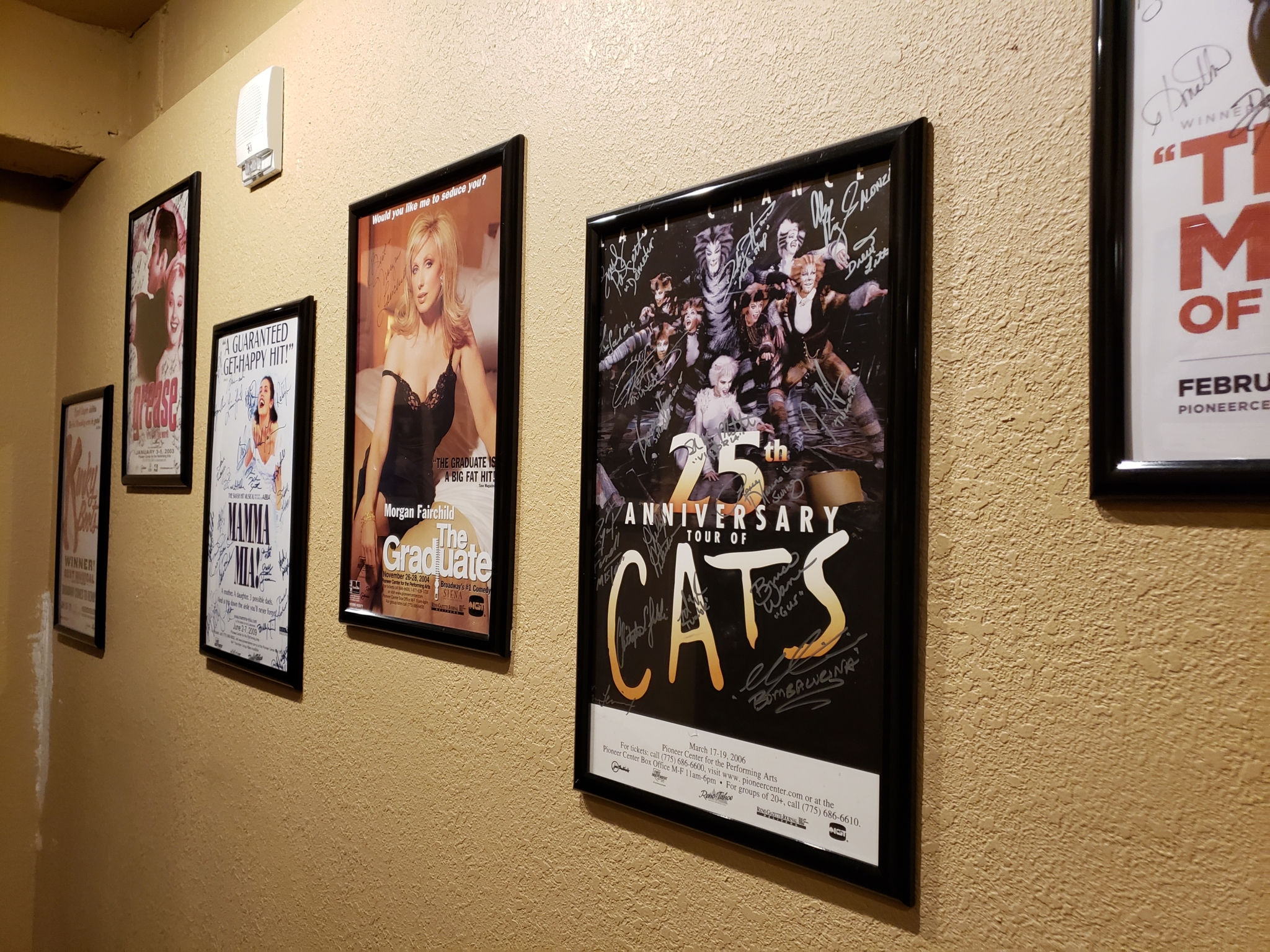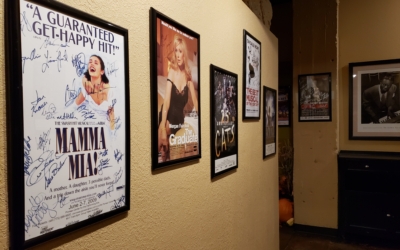 La porte d’entrée se trouve dans un coin de la grande terrasse extérieure. Le restaurant possède deux salles, et nous avons été dirigés à gauche. On passe dans un petit couloir avec plusieurs affiches de films et spectacles. Certaines sont signées.