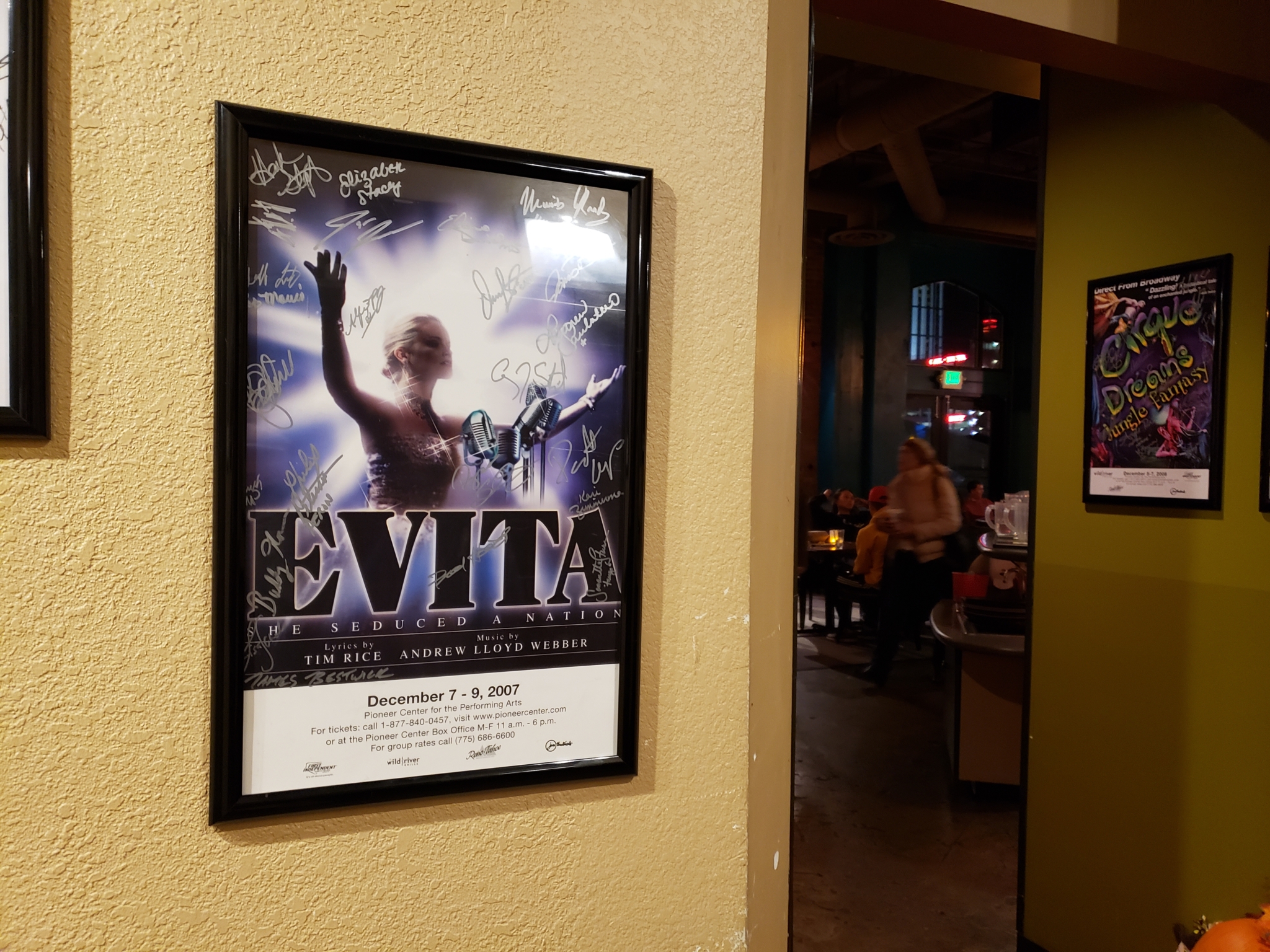 Il faut savoir que le restaurant se situe dans l’immeuble qui abritait le Riverside Hotel Building. Considéré comme à l’origine de la ville de Reno, il est inscrit dans le Registre National des Monuments Historiques depuis 1986. C’était un hôtel de luxe au début du siècle dernier, avant qu’un terrible incendie le détruisit en 1922.
