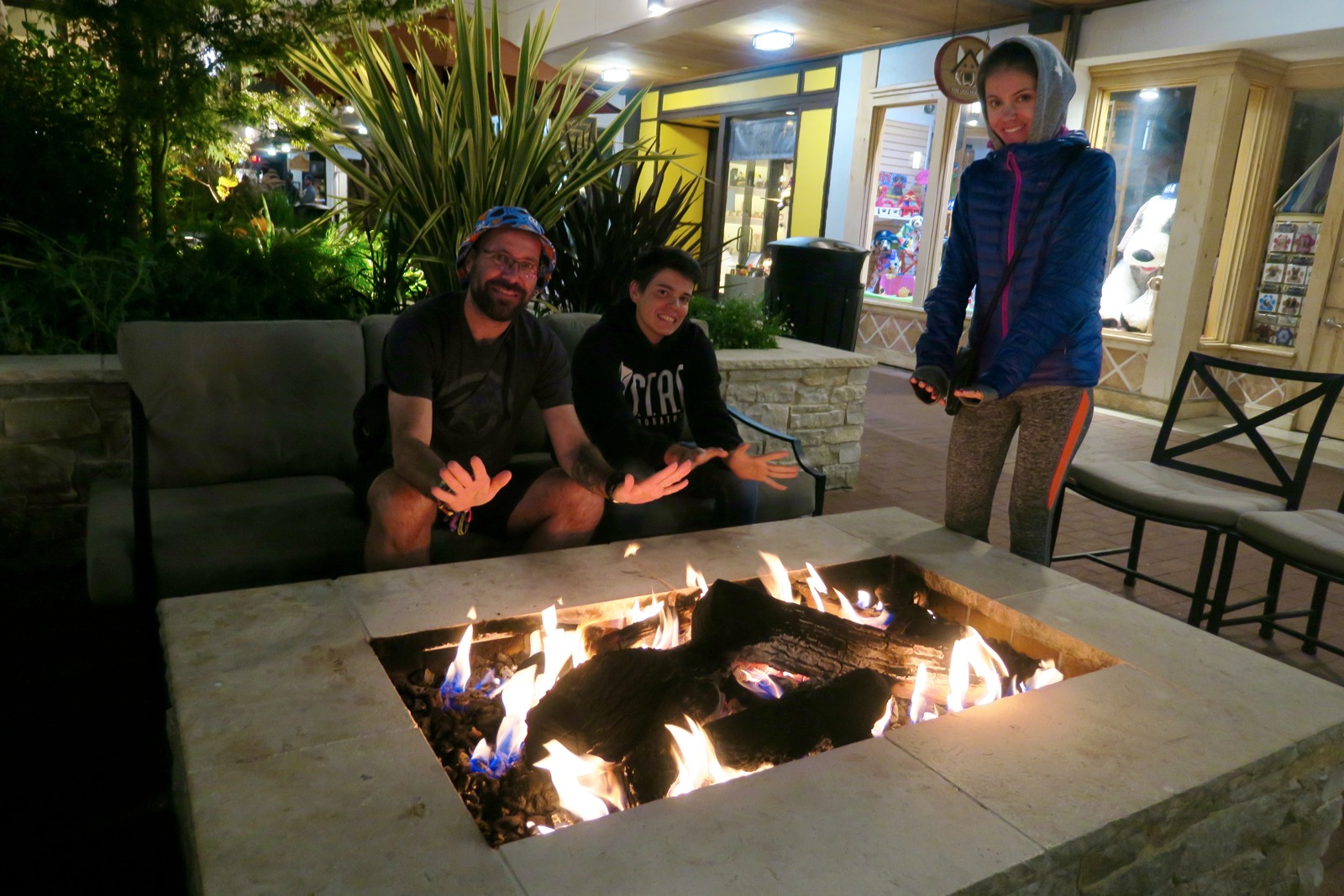 L'endroit est plutôt sympathique, sur plusieurs niveaux, avec tout en bas une sorte de place avec du mobilier extérieur et la possibilité de se réchauffer avec des braséros, très pratique le soir arrivant.